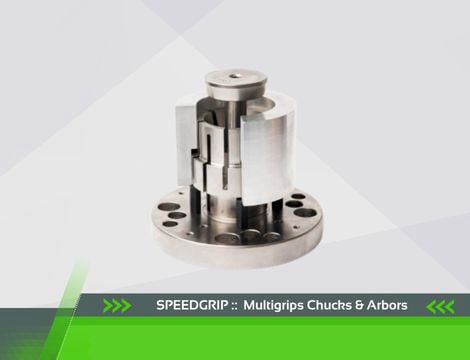 Multiagujero: El agarre en el agujero de piezas torneadas, refrentadas y mandrinadas es ideal con una pinza Speedgrip. Esta pinza proporciona un agarre de 360 grados y una fuerte acción de retroceso, a diferencia de un mandril de 3 mordazas con 3 puntos de contacto y sin retroceso.