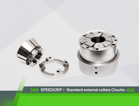 > Las pinzas de cambio rápido tienen una longitud de agarre de 360 grados, prácticamente inafectadas por la fuerza centrífuga, una fuerte acción de retroceso y una TIR de 0,0005, que supera con creces las capacidades de los mandriles de 3 garras.